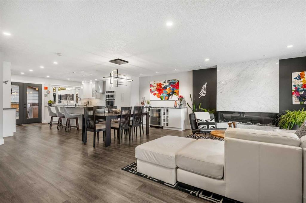 Step inside to a stunning OPEN-CONCEPT MAIN FLOOR, where you’re immediately greeted by a dramatic FLOOR-TO-CEILING FIREPLACE CUSTOM FEATURE with accent lighting—a true statement piece. The dream kitchen will impress even the most discerning chef, featuring an expansive prep island with high-end JENN-AIR APPLIANCES (refrigerator, dishwasher) oven, warming drawer, and beverage centre), custom cabinetry with illuminated glass doors that add a refined touch of sophistication.