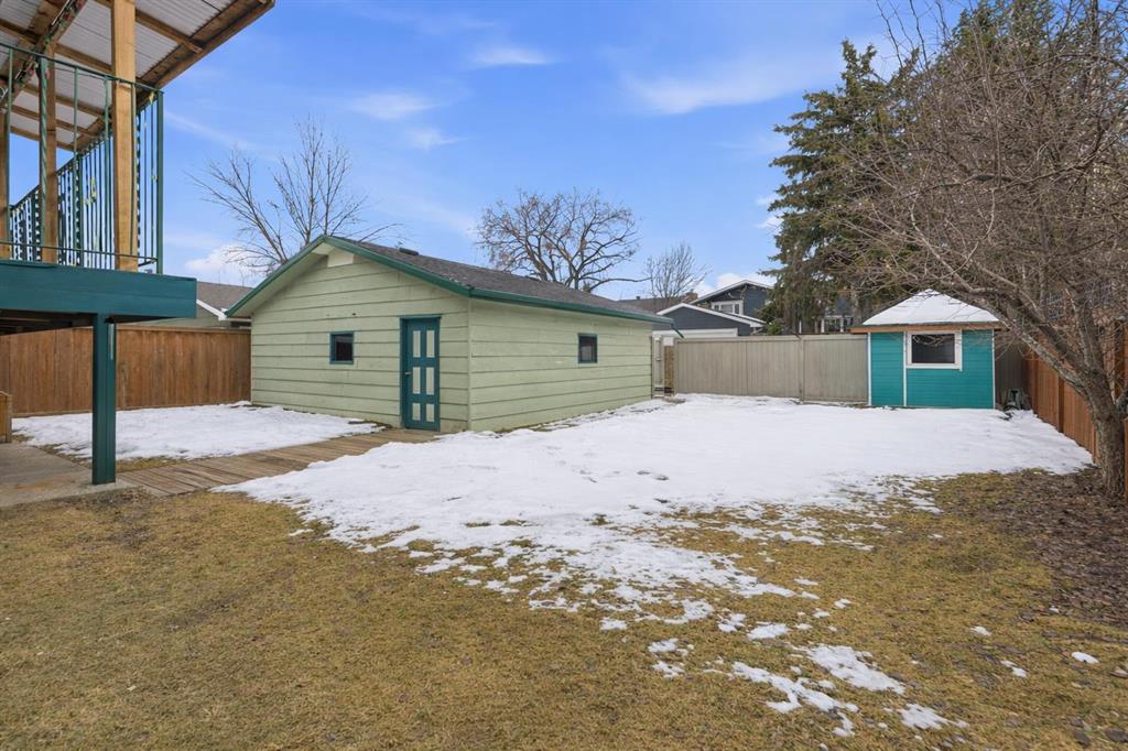 Situated on a large lot with rear alley access, the property includes a double detached garage and generous yard space — perfect for future landscaping, outdoor living improvements, or additional parking flexibility.