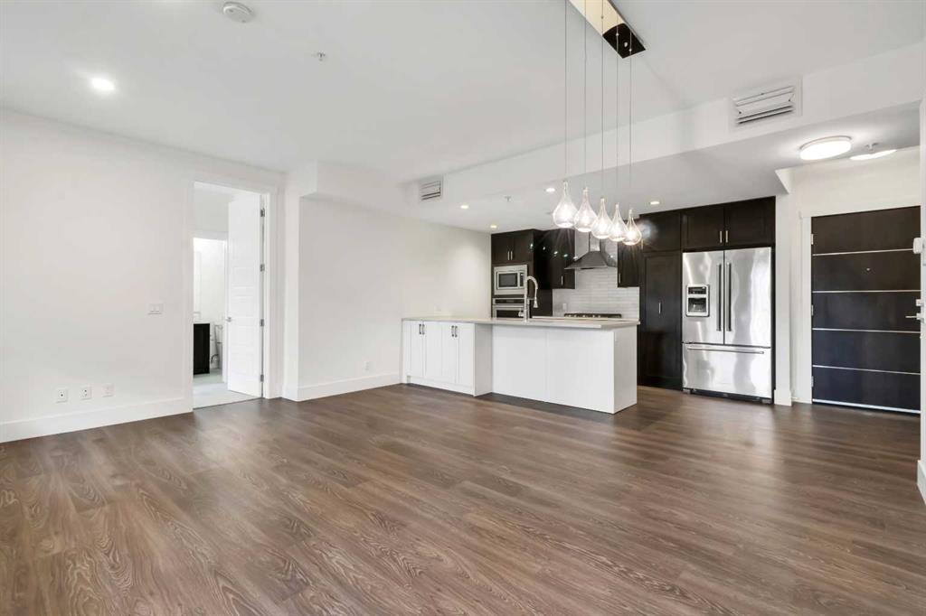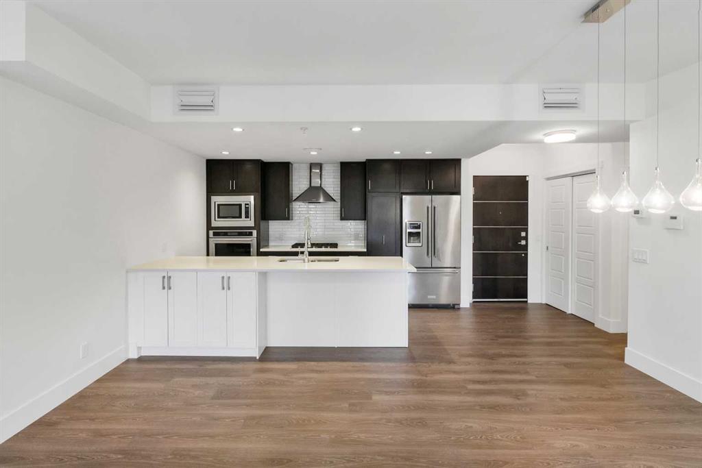 LOCATION. LIFESTYLE. CERTAINTY. Welcome to 3320 3rd Ave NW—located in a desirable riverfront community close to parks, pathways, and everyday amenities. This main-floor 2-BEDROOM + DEN unit offers easy access with no elevator wait, making daily living more convenient. The layout is open and practical, with a bright living and dining area that connects well to the kitchen. The Modern kitchen offers good counter space, modern appliances, and plenty of storage. The primary bedroom includes a walk-in closet and private ensuite, while the second bedroom is well-sized and close to the main bathroom. A separate den/flex room near the entrance is perfect for a home office, study, or extra storage. Enjoy your private patio—great for morning coffee or relaxing in the evening. The unit also includes in-suite laundry and heated underground parking for year-round comfort. The location is a big plus—just steps from the Bow River pathways and close to Shouldice Athletic Park, Foothills Hospital, the University of Calgary, Market Mall, and minutes to downtown. Pet-friendly building (with board approval), allowing up to two dogs, two cats, or one dog and one cat per unit. RMS size is 963 sq ft. Builder size is 1,038 sq ft including the balcony. A great option for first-time buyers, downsizers, or investors looking for a well-located and functional home.
