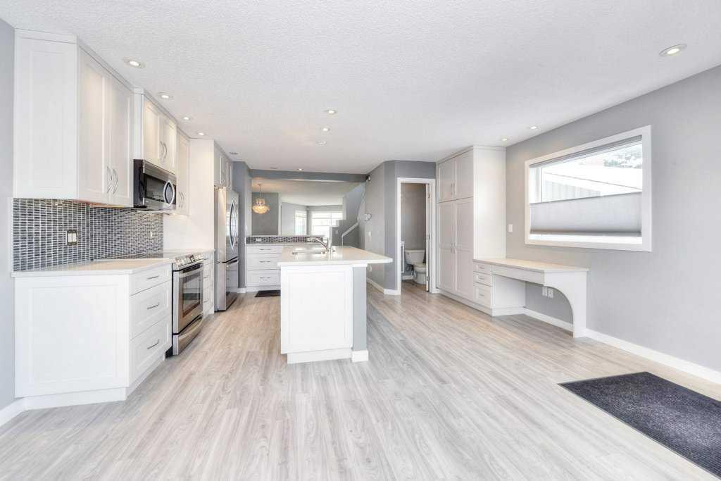 Located just minutes from Marda Loop, this updated single-family 2-storey infill features a double detached garage. Step into a spacious, tiled front entry and a main floor renovated in 2013, offering updated flooring throughout. At the front of the home is a warm, sunlit living room with a wood-burning fireplace. Moving through, you’ll find a large dining area adjacent to an updated kitchen with a generous central island with a deep sink, extensive cabinetry, a quality LG stainless-steel appliance package, and a Bosch dishwasher. At the rear of the home is a spacious nook and a door leading to an expansive deck with stairs down to the yard. A stylish, updated 2-piece bath completes the main floor.