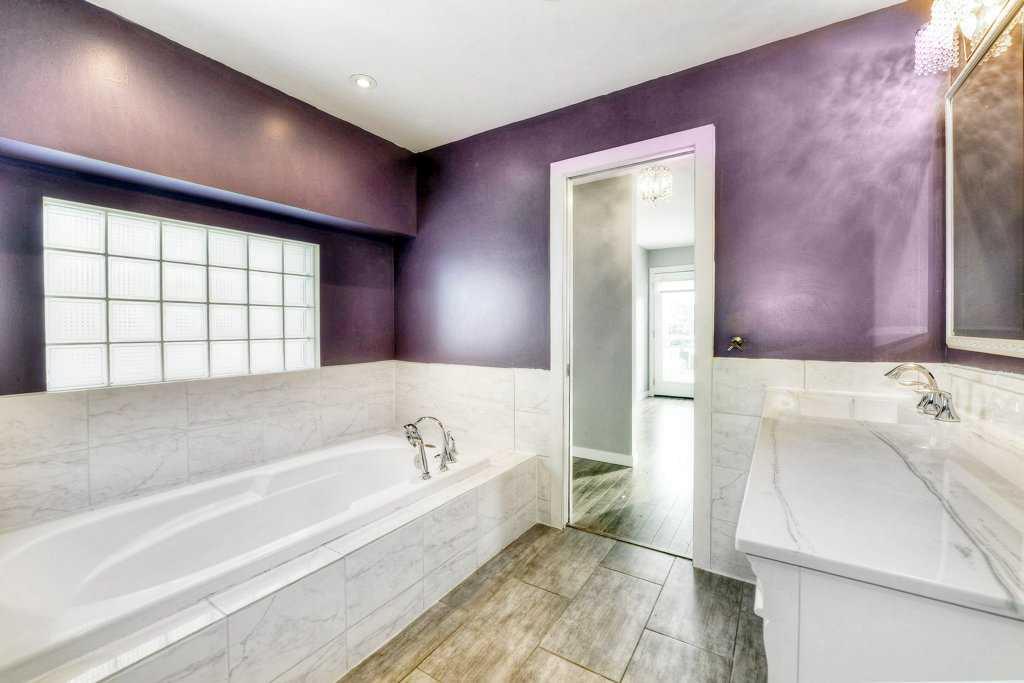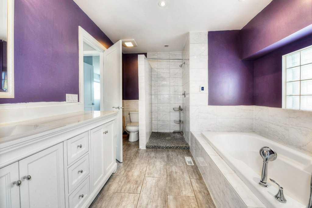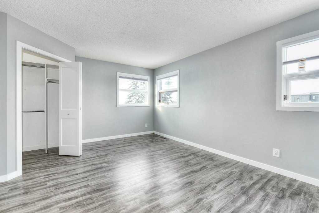 The upper level offers two large bedrooms and a spacious 4-piece bath. The bright primary suite features south exposure, a quaint balcony, and a good-sized walk-through closet leading to a large 4-piece ensuite with a soaking tub, separate shower, and plenty of space. A generous second bedroom with a walk-in closet completes the level.
