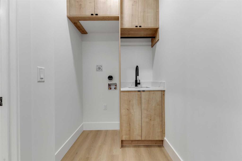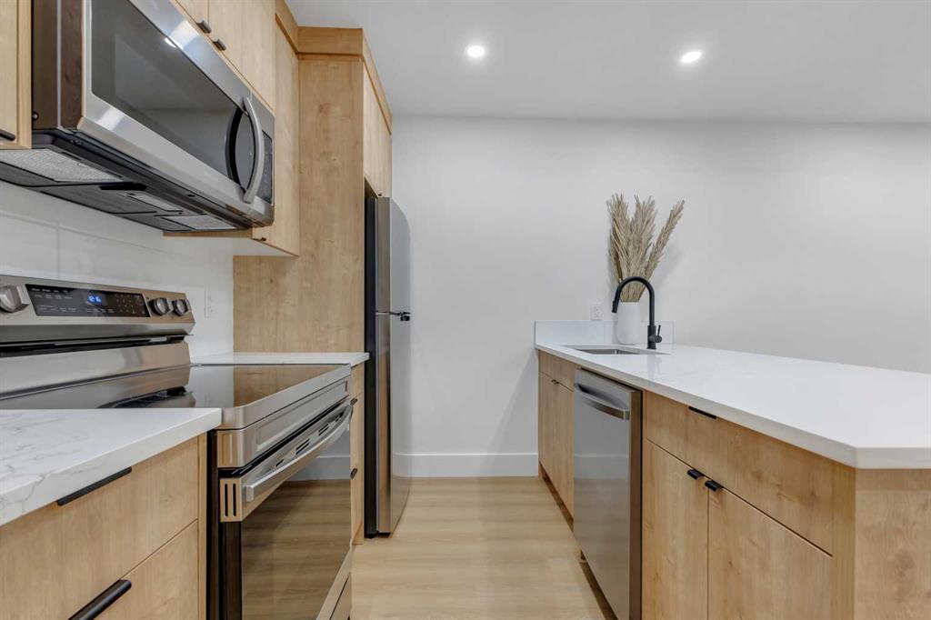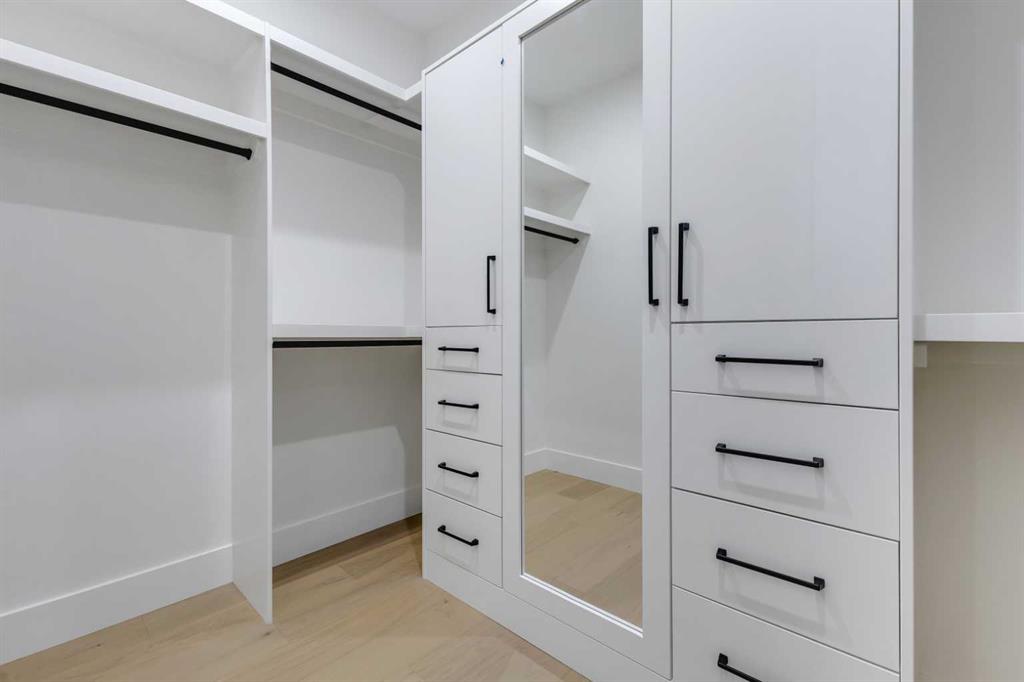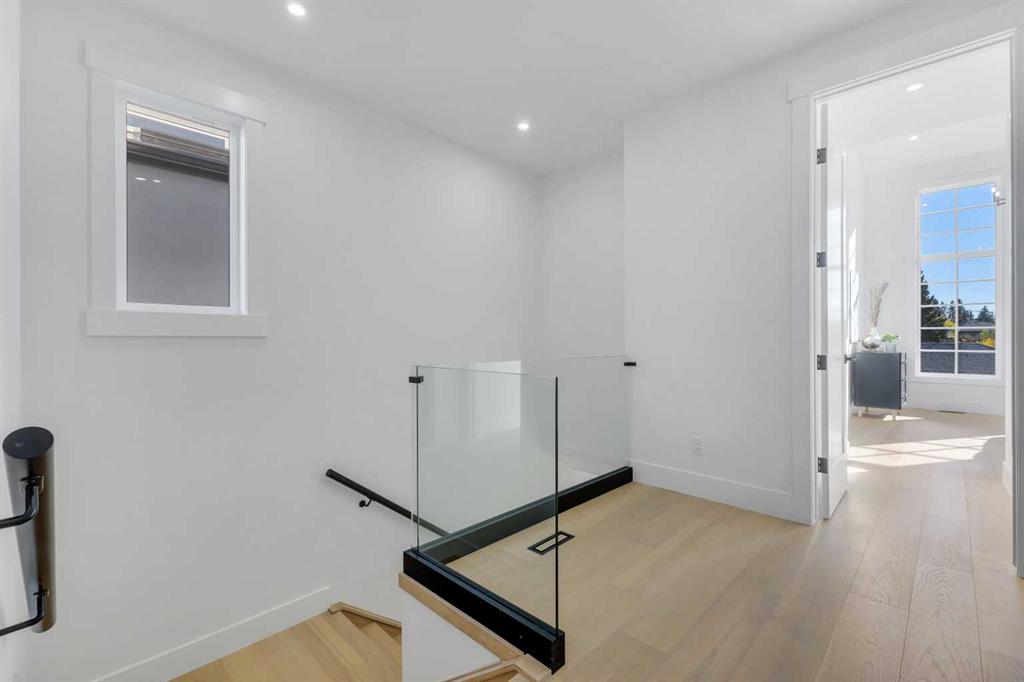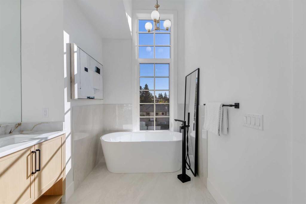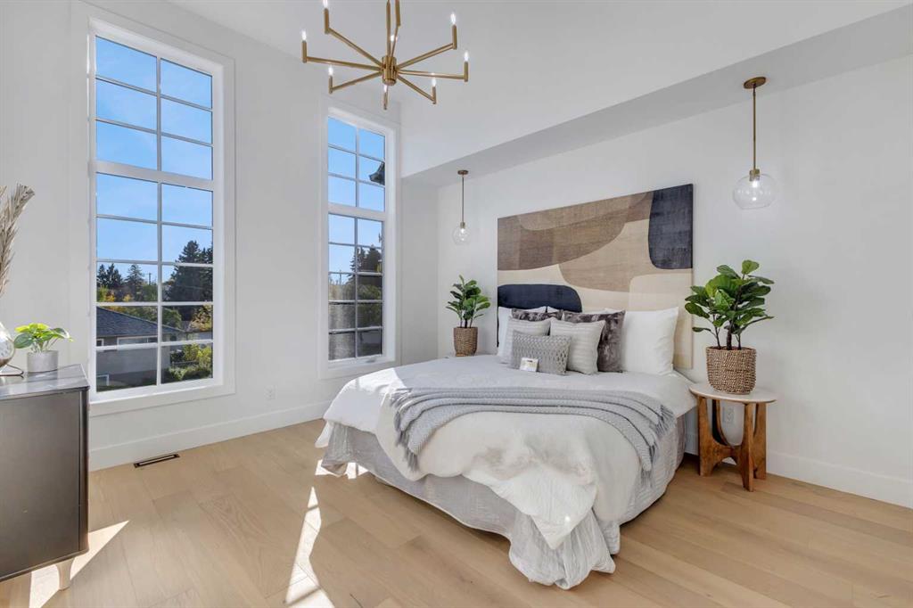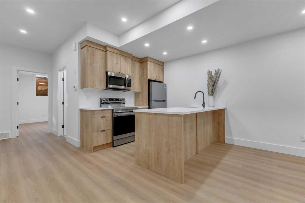 Don’t miss this stunning modern infill in the heart of ROSSCARROCK, designed with HIGH-END FINISHES, a WALKTHROUGH BUTLER’S PANTRY, and a RARE 3-BED, 2-BATH LEGAL LOWER SUITE (approved by the city). With a functional open-concept layout, upscale details, and a prime inner-city location, this home delivers a perfect blend of style and practicality. The spacious foyer welcomes you inside with direct access to the formal dining area, bathed in natural light from oversized windows, making it an ideal space for hosting gatherings or enjoying everyday meals. A walkthrough butler’s pantry seamlessly connects the dining room to the chef’s kitchen, offering custom cabinetry, a beverage fridge, a sink, and additional storage—perfect for entertaining and meal prep. The kitchen itself is a showstopper, featuring ceiling-height cabinetry, quartz counters, a full-height backsplash, and a large central island with bar seating. A stainless-steel appliance package includes a French door fridge, gas cooktop, wall oven, microwave, and dishwasher, ensuring both function and style. More storage is offered by the eye-catching coffee station or wine area, enhanced with LED lighting and glass displays. A main floor home office off the kitchen adds even more convenience for a work-from-home set up. The bright and open living room is designed for comfort and elegance, featuring an inset gas fireplace with a full-height tile surround with built-in cabinetry, and sliding patio doors taking you out to the rear deck. The rear mudroom helps keep daily essentials organized, and an upscale powder room completes the main level. Upstairs, the primary suite is a true retreat with vaulted ceilings, expansive windows, and a spacious walk-in closet. The spa-like 5-pc ensuite is designed for relaxation, featuring heated tile floors, dual sinks, a freestanding soaker tub, and a walk-in shower with full-height tile surround. Two additional secondary bedrooms share a well-appointed 4-pc bath, while a nook on the landing provides the perfect study space and a full laundry room with extra storage ensures everyday convenience. The legal lower suite (approved by the city) is a standout feature, offering a private side entrance and modern finishes as the rest of the home. With 9-ft ceilings, engineered hardwood floors, 2 FULL BATHS AND 3 FULL BEDS, this suite is ideal for tenants, extended family, or additional living space! The 4-pc baths feature tub/shower combos with full-height tile surrounds. The open-concept kitchen and living area include quartz counters, custom cabinetry, a full-size fridge, electric range, and separate laundry. Rosscarrock is a vibrant inner-city neighborhood, offering quick access to downtown via Bow Trail, transit options like Westbrook C-Train Station, and fantastic shopping and dining at Westbrook Mall, 17th Ave, and Killarney. Outdoor lovers will appreciate Edworthy Park, Douglas Fir Trail, and Shaganappi Point Golf Course, plus top-rated schools just minutes away!