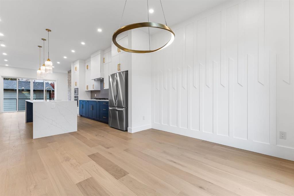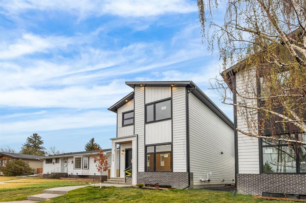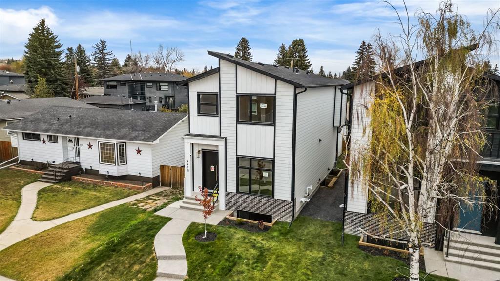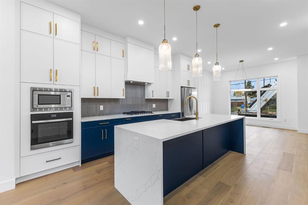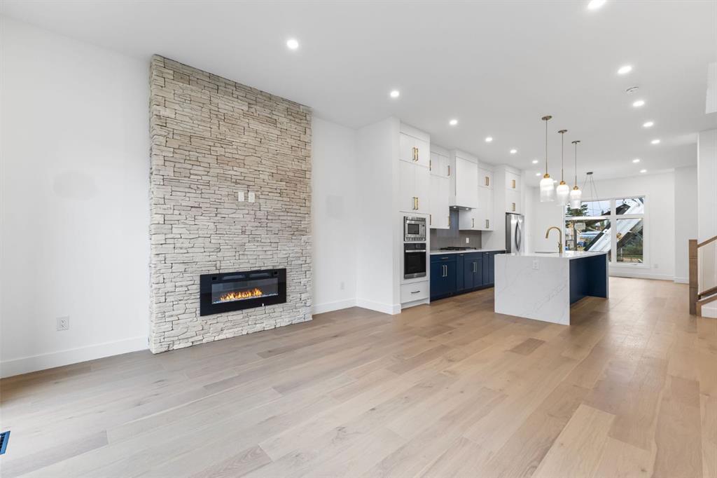 OPEN HOUSE SATURDAY, OCTOBER 25TH FROM 1-3 PM & SUNDAY, OCTOBER 26TH FROM 2-4 PM. Welcome to this brand-new, 3 bedroom residence perfectly situated in the mature community of Rosscarrock. Designed for modern living and crafted with exceptional attention to detail, this contemporary two-storey home offers over 1900 sq ft of beautifully developed space, plus a legal self-contained one-bedroom basement suite—ideal for guests, or as a potential mortgage helper. The main level showcases an open-concept design enhanced by wide-plank hardwood floors, high ceilings, and expansive windows that flood the space with natural light. The inviting living room features a striking floor to ceiling fireplace and built-in shelving, creating a warm focal point for gatherings. The adjacent dining area easily accommodates family meals or formal entertaining. At the heart of the home, the chef-inspired kitchen impresses with full-height cabinetry, quartz countertops, an oversized island with breakfast bar and excellent appliance package. Thoughtful details such as recessed lighting, designer chandelier, a functional mudroom with custom built-ins and 2 piece powder room elevate the space. Upstairs, the vaulted-ceiling primary suite is a private retreat, complete with a spacious walk-in closet fitted with custom organizers and a luxurious 5-piece ensuite featuring double sinks, a quartz-topped vanity, freestanding soaking tub, and separate glass shower. Two additional bedrooms, a 4-piece bath, and a convenient laundry room with sink complete this level. The fully developed lower level has been designed as a private, self-contained legal one-bedroom suite, complete with its own kitchen, living area, full bathroom, and laundry facilities. Large windows, recessed lighting, and quality finishes ensure the suite feels bright and inviting—ideal for extended family, guests, or rental use. Outside, enjoy a private, landscaped yard with a rear deck, fencing, and a double detached garage. The home’s exterior blends timeless brick and composite siding with modern lines and a welcoming south-facing front exposure. Situated on a quiet street within walking distance to parks, playgrounds & schools and close to Shaganappi Point Golf Course, shopping, scenic Edworthy Park and public transit, this property offers the perfect balance of style, flexibility, and convenience. Newly built in 2025, this outstanding Rosscarrock residence delivers premium craftsmanship, functional design, and exceptional versatility—ideal for today’s discerning buyer seeking luxury living with the added benefit of a legal self-contained suite.