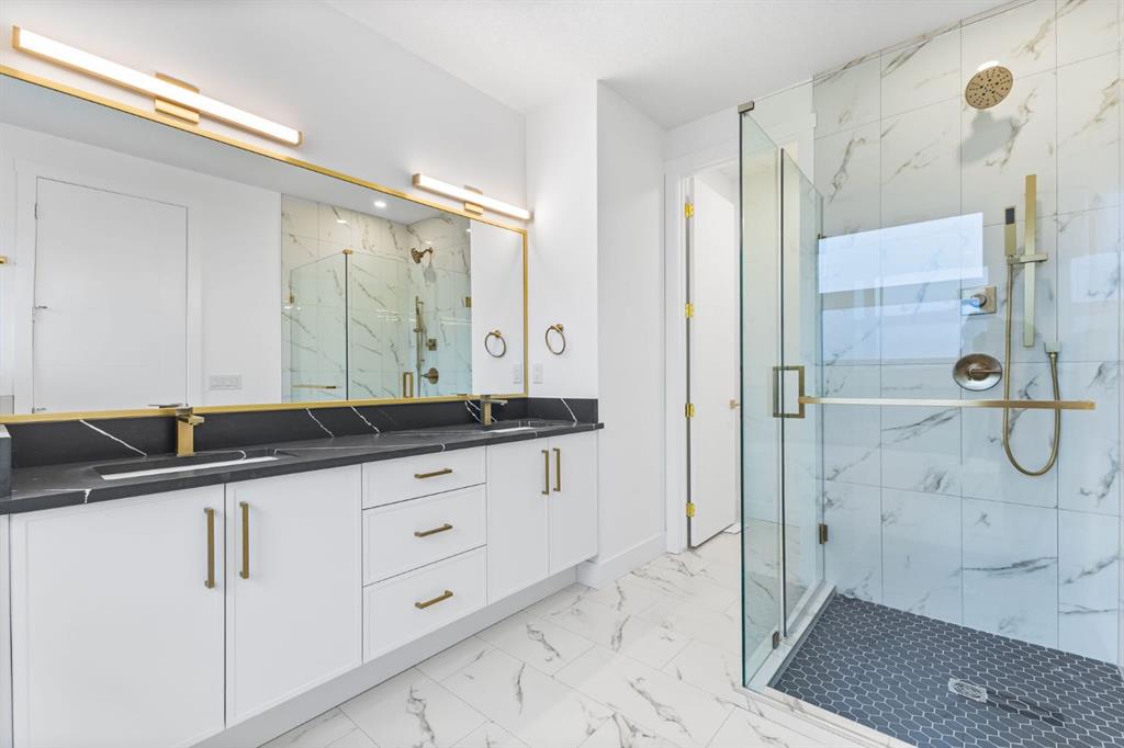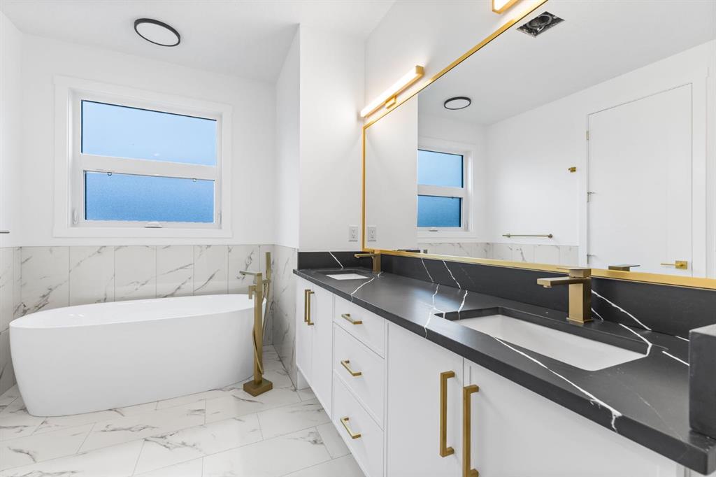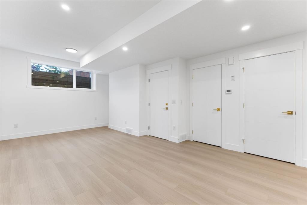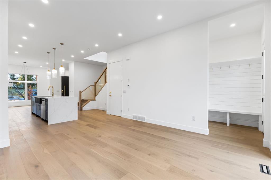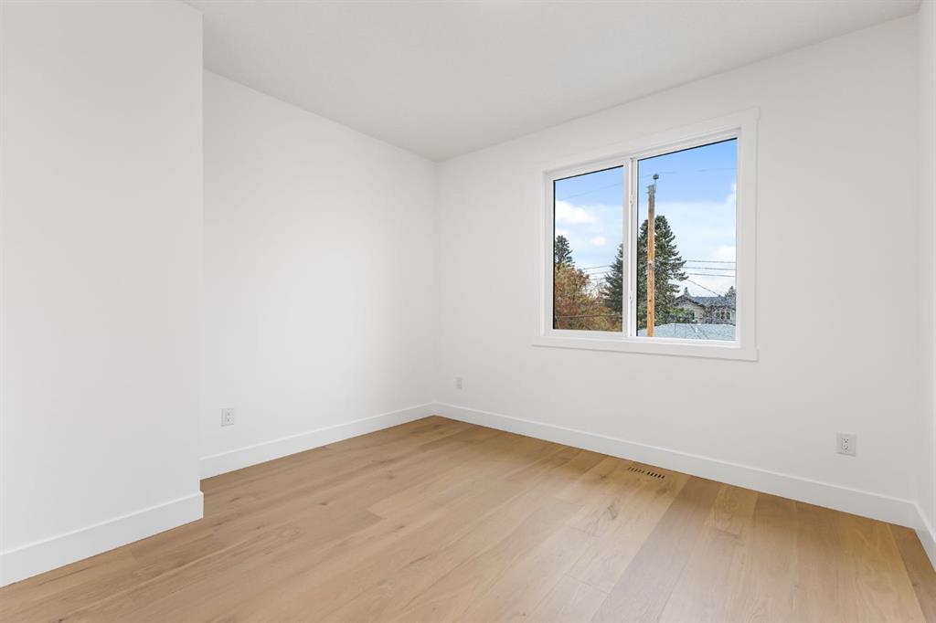 OPEN HOUSE SATURDAY, OCTOBER 25TH FROM 1-3 PM & SUNDAY, OCTOBER 26TH FROM 2-4 PM. Welcome to this brand-new, 3 bedroom residence perfectly situated in the mature community of Rosscarrock. Designed for modern living and crafted with exceptional attention to detail, this contemporary two-storey home offers over 1900 sq ft of beautifully developed space, plus a legal self-contained one-bedroom basement suite—ideal for guests, or as a potential mortgage helper. The main level showcases an open-concept design enhanced by wide-plank hardwood floors, high ceilings, and expansive windows that flood the space with natural light. The inviting living room features a striking floor to ceiling fireplace and built-in shelving, creating a warm focal point for gatherings. The adjacent dining area easily accommodates family meals or formal entertaining. At the heart of the home, the chef-inspired kitchen impresses with full-height cabinetry, quartz countertops, an oversized island with breakfast bar and excellent appliance package. Thoughtful details such as recessed lighting, designer chandelier, a functional mudroom with custom built-ins and 2 piece powder room elevate the space. Upstairs, the vaulted-ceiling primary suite is a private retreat, complete with a spacious walk-in closet fitted with custom organizers and a luxurious 5-piece ensuite featuring double sinks, a quartz-topped vanity, freestanding soaking tub, and separate glass shower. Two additional bedrooms, a 4-piece bath, and a convenient laundry room with sink complete this level. The fully developed lower level has been designed as a private, self-contained legal one-bedroom suite, complete with its own kitchen, living area, full bathroom, and laundry facilities. Large windows, recessed lighting, and quality finishes ensure the suite feels bright and inviting—ideal for extended family, guests, or rental use. Outside, enjoy a private, landscaped yard with a rear deck, fencing, and a double detached garage. The home’s exterior blends timeless brick and composite siding with modern lines and a welcoming south-facing front exposure. Situated on a quiet street within walking distance to parks, playgrounds & schools and close to Shaganappi Point Golf Course, shopping, scenic Edworthy Park and public transit, this property offers the perfect balance of style, flexibility, and convenience. Newly built in 2025, this outstanding Rosscarrock residence delivers premium craftsmanship, functional design, and exceptional versatility—ideal for today’s discerning buyer seeking luxury living with the added benefit of a legal self-contained suite.