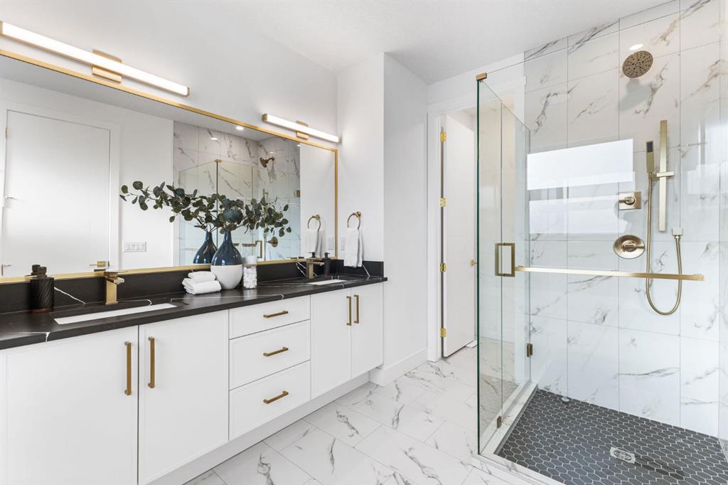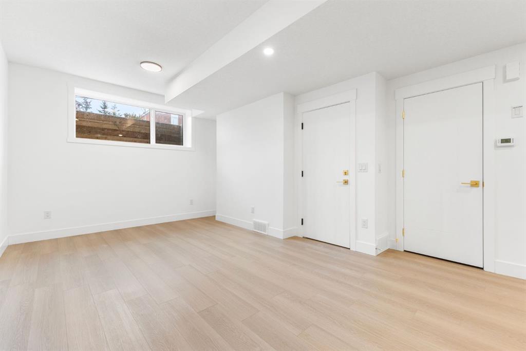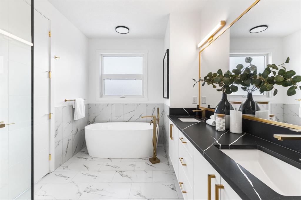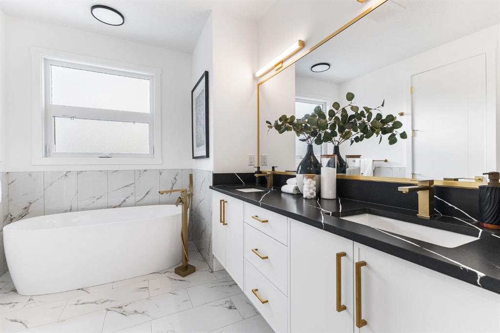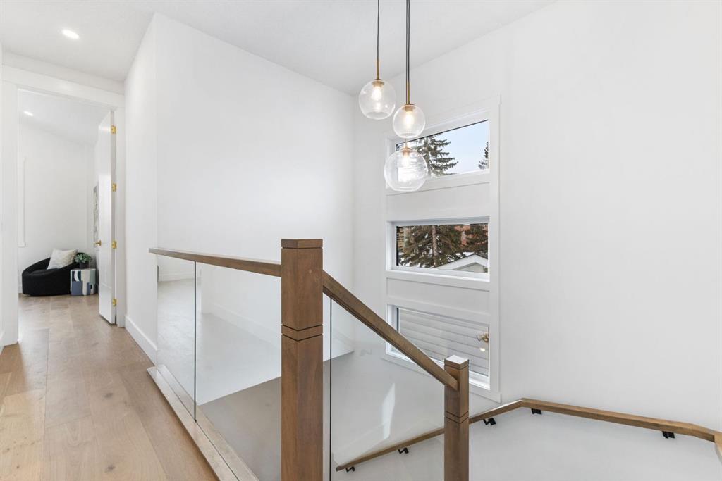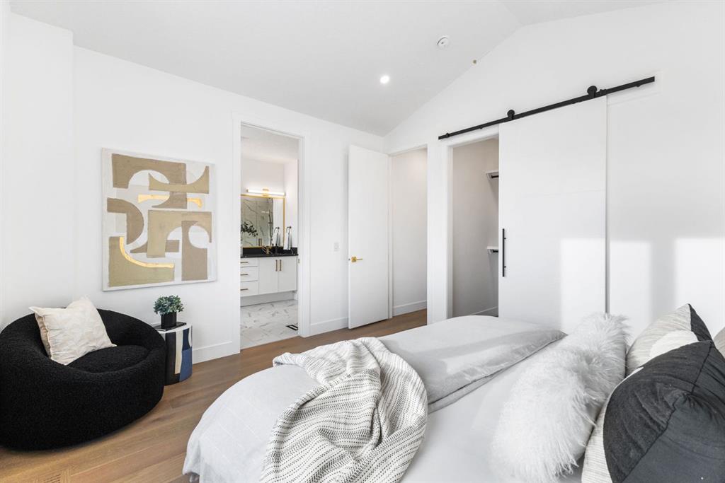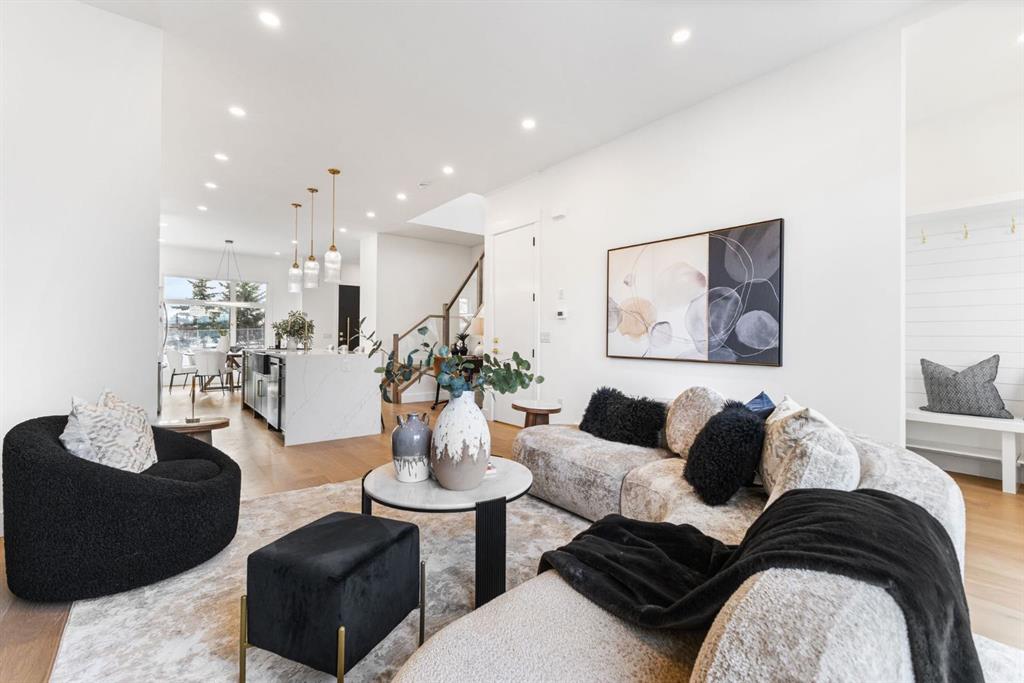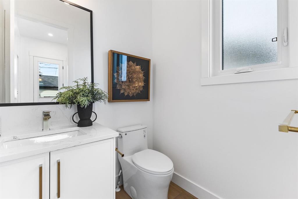 OPEN HOUSE SATURDAY, JANUARY 31 FROM 11:00 AM - 2:00 PM!!! Welcome to this brand-new, 3 bedroom residence perfectly situated in the mature community of Rosscarrock. Designed for modern living and crafted with exceptional attention to detail, this contemporary two-storey home offers over 1900 sq ft of beautifully developed space, plus a self-contained legal one-bedroom basement suite—ideal for guests, or as a potential mortgage helper. The main level showcases an open-concept design enhanced by wide-plank hardwood floors, high ceilings, and expansive windows that flood the space with natural light. The inviting living room features a striking floor to ceiling fireplace and built-in shelving, creating a warm focal point for gatherings. The adjacent dining area easily accommodates family meals or formal entertaining. At the heart of the home, the chef-inspired kitchen impresses with full-height cabinetry, quartz countertops, an oversized island with breakfast bar and excellent appliance package. Thoughtful details such as recessed lighting, designer chandelier, a functional mudroom with custom built-ins and 2 piece powder room elevate the space. Upstairs, the vaulted-ceiling primary suite is a private retreat, complete with a spacious walk-in closet fitted with custom organizers and a luxurious 5-piece ensuite featuring double sinks, a quartz-topped vanity, freestanding soaking tub, and separate glass shower. Two additional bedrooms, a 4-piece bath, and a convenient laundry room with sink complete this level. The fully developed lower level has been designed as a private, self-contained legal one-bedroom suite, complete with its own kitchen, living area, full bathroom, and laundry facilities. Large windows, recessed lighting, and quality finishes ensure the suite feels bright and inviting—ideal for extended family, guests, or rental use. Outside, enjoy a private, landscaped yard with a rear deck, fencing, and a double detached garage. The home’s exterior blends timeless brick and composite siding with modern lines and a welcoming south-facing front exposure. Situated on a quiet street within walking distance to parks, playgrounds & schools and close to Shaganappi Point Golf Course, shopping, scenic Edworthy Park and public transit, this property offers the perfect balance of style, flexibility, and convenience. Newly built in 2025, this outstanding Rosscarrock residence delivers premium craftsmanship, functional design, and exceptional versatility—ideal for today’s discerning buyer seeking luxury living with the added benefit of a legal self-contained suite.