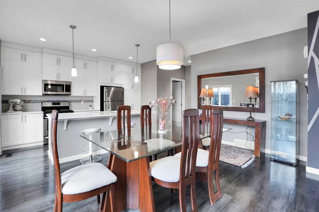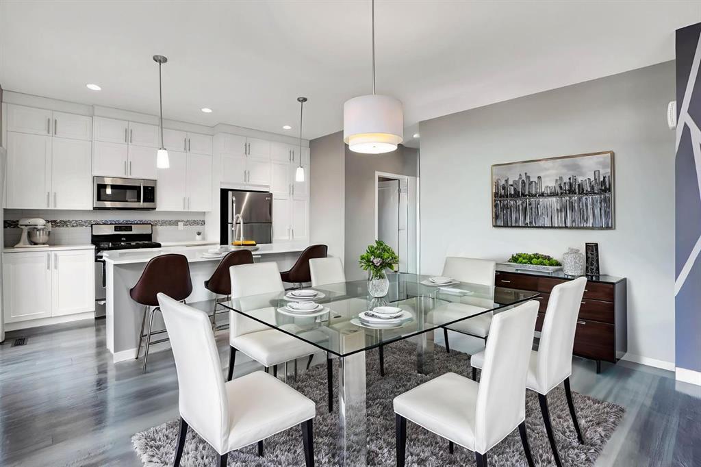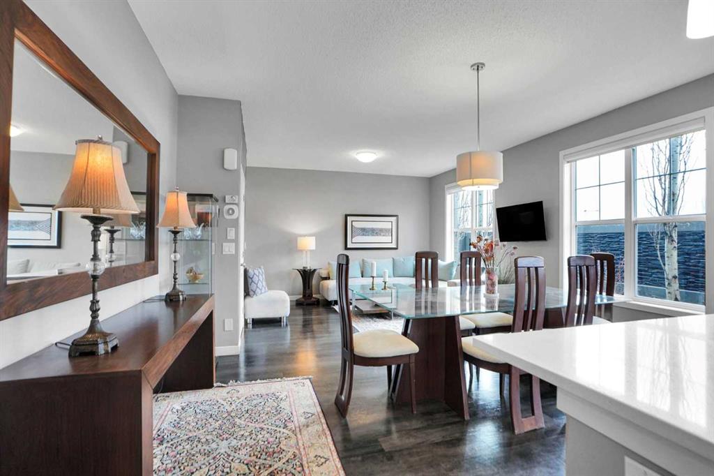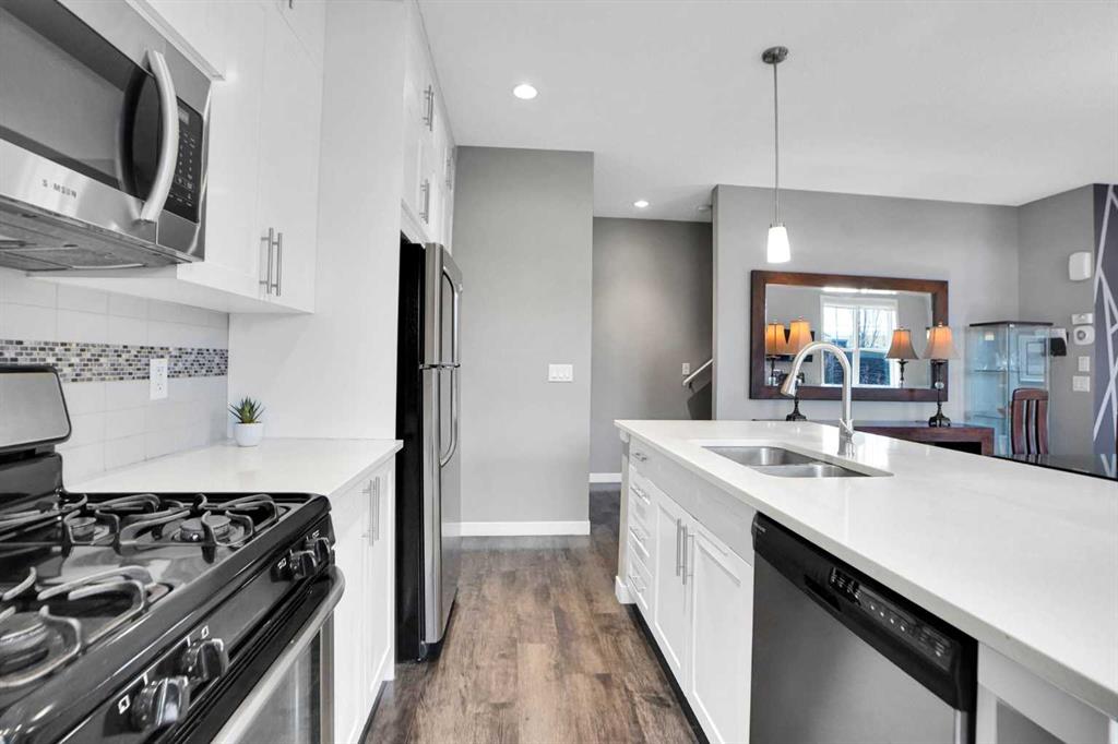 WELCOME TO THE Desirable Community of SAGE HILL, over 2000 sqft 2 story 4 bedrooms townhouse with single front attached garage & 3 full & one half washroom. If you are looking for that first home in a growing community, look no further! This house is loaded with tons of upgrades – 9’ ceilings on the main floor. Basement is fully finished with one bedroom, rec room & one full washroom. Ideally located close to all amenities, Stoney Trail ring road, Shaganappi Trail , minutes away from Sage Hill Shopping Centre, Walmart, Costco, Tim Hortons, McDonalds, Starbucks, and just steps away from green space & walking paths exactly what you are looking for. This east facing home welcomes you with an open concept layout. As you enter, you are met by a decent size foyer. You will love the gleaming LVP flooring on the main floor. Your new kitchen boasts lots of full height cabinetry and a built-in pantry, A DECENT SIZE KITCHEN ISLAND WITH QUARTZ COUNTERTOPS, all stainless steel appliances Gas Stove, Refrigerator, microwave Hood fan, Dish-washer, washer & dryer & Central A/C. The dining area is just off the kitchen with plenty of space for a large table. The spacious living room is flooded with tons of natural light. A 2-piece washroom completes the main floor. Upper level features a large size primary bedroom with a 4-piece bathroom (tub/shower) and walk-in closet, plus 2 other decent size bedrooms and a full 4-piece washroom to complete this level. Fully finished basement with a huge size bedroom, large rec room, one full washroom & laundry. All appliances & central A/C included. Enjoy the nice west backyard & patio where you can BBQ, relax, and enjoy your sunny days*Don't miss your chance to own this exceptional property - schedule a Private viewing today and prepare to be impressed!