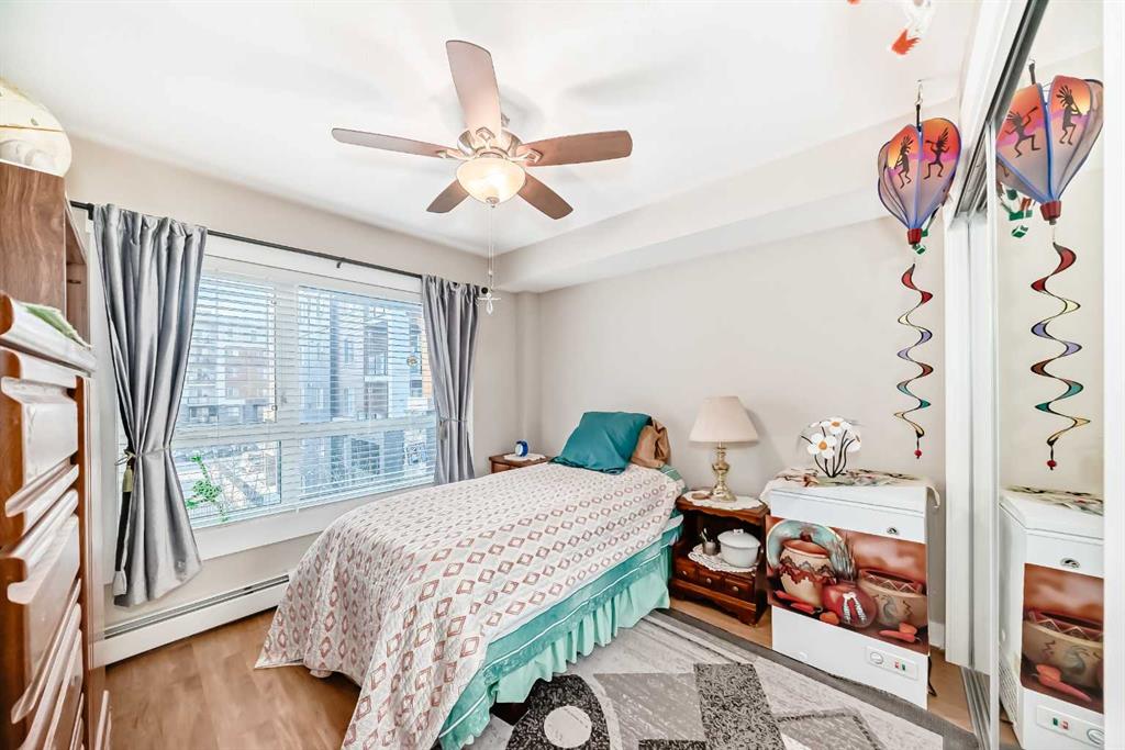 Bright, modern large unit with large balcony. Two generously sized bedrooms and 2 bathrooms. Upgraded flooring. Includes heated underground parking stall and private storage. Large balcony. Desirable Calgary neighborhood.