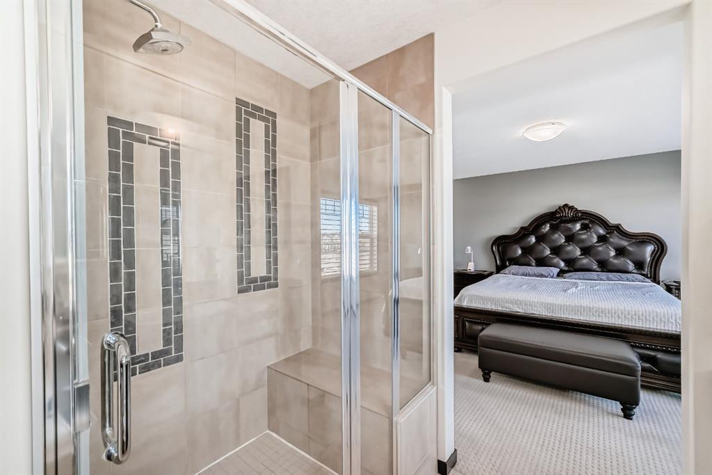 The staircase will take you up to another level! Starting with the spacious primary master suite impresses with GLASS FRENCH DOORS, a SPA-INSPIRED ENSUITE with DOUBLE SINKS, SOAKER TUB, WALK-IN SHOWER! All of this with the view of the green space in the back from the large windows of the Master! Don’t forget the large walk-in closet!
