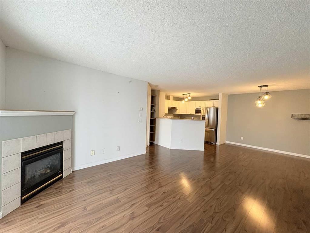 This unit is located on the top floor of the 4000 units complex, It's balcony is situated to perfectly view the water bodies overseeing the Stoney Trail. Despite its proximity, traffic noise is minimal. From the elevators, It's a straight and short path to the unit for convenience. The unit is spaciously laid out with privacy between the two bedrooms. There are a total of two bathrooms with one of them located inside the primary bedroom. The living room is brightly lit and give a great view of the balcony, the kitchen makes effective use of its space and has been neatly kept, perfect for a few roommates of a small family starting out.