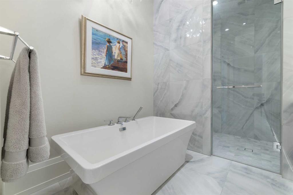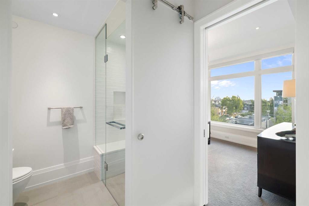 Welcome to Unit 302 at the Residences of King Edward — a rare opportunity to own a top-floor suite in one of Calgary’s most exclusive boutique buildings. Designed and built by Rockwood Custom Homes, this residence offers nearly 2,000 sq ft of refined living space with breathtaking, unobstructed views of downtown Calgary from every room. Set on a quiet street in South Calgary, just steps from cSPACE — the city’s leading arts and cultural hub — and within walking distance of all the amenities in vibrant Marda Loop, this location is as convenient as it is inspiring. With bike paths, off-leash dog parks, and green spaces just outside your door, you’ll enjoy the perfect blend of inner-city energy and community charm.An oak-accented foyer welcomes you into a spacious, open-concept floor plan that blends sophisticated design with everyday comfort. The chef’s kitchen is a true showpiece, featuring integrated Wolf, Sub-Zero, and Miele appliances, a full-height dual-temperature wine fridge, and custom cabinetry for seamless storage and functionality. Whether you're hosting guests or enjoying a quiet evening in, the space flows effortlessly into the dining and living areas and onto the generous east-facing terrace. With folding glass doors and radiant overhead heaters, the terrace extends your living space and allows for year-round enjoyment of Calgary’s stunning skyline. The primary suite is a luxurious retreat, offering private terrace access, a spacious dressing room with custom built-ins, and a spa-inspired ensuite featuring a freestanding tub, multi-head shower, dual vanity, and private water closet. A second bedroom with its own full ensuite and ample built-in storage provides a secluded haven for guests or family. There’s also a well-appointed home office, a powder room, and a flex room with a discreet wall bed — ideal as a third bedroom, fitness area, or creative studio. Additional conveniences include a fully equipped laundry room, central air conditioning, and custom-built storage solutions throughout. This home comes with two titled underground parking stalls conveniently located near the elevator, as well as an oversized private storage room. Residents also enjoy access to a secure, heated parkade featuring a bike repair station, common bike storage, and a dog/bike wash area. From the architectural craftsmanship to the unbeatable location and captivating views, this is more than just a home — it’s an elevated lifestyle. Discover the perfect balance of luxury, comfort, and convenience in one of Calgary’s most inspired communities.