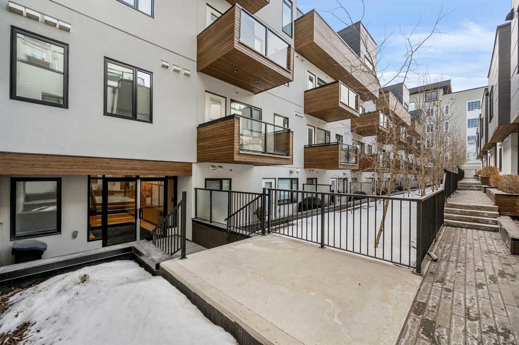 Welcome to COCO — a contemporary gem that captures the essence of upscale urban living in the heart of vibrant Marda Loop. Designed with modern sophistication in mind, this air-conditioned one-bedroom residence offers a seamless blend of style, comfort, and functionality. Tall 9-foot ceilings and sleek laminate floors create an airy, open feel throughout, while the thoughtfully designed layout maximizes every inch of space. The kitchen stands out as a true showpiece, featuring premium stainless steel appliances including a gas convection range and concealed slide-out hood fan. Full-height cabinetry provides ample storage, while polished quartz countertops and an extended dining peninsula create the perfect balance of beauty and practicality for cooking, dining, or entertaining. The open-concept living area is bright and welcoming, bathed in natural light from large windows and flowing effortlessly onto a spacious private patio complete with a gas line—ideal for summer evenings and outdoor gatherings. The bedroom offers a peaceful escape, with a walk-through closet leading to a stylish 4-piece bath finished with quartz counters, ceramic tile, and a fully tiled tub/shower surround. Added conveniences include in-suite laundry with a full-size washer and dryer, plus a titled, heated underground parking stall for year-round comfort. COCO is a pet-friendly community that emphasizes modern convenience and lifestyle. Low condo fees cover heat, water, and access to exceptional amenities such as secure bike storage, guest parking, a rentable guest suite, a multi-use lounge, an indoor dog wash, a water bottle refill station, and a beautifully landscaped courtyard. Perfectly situated steps from shops, restaurants, cafés, fitness studios, parks, and public transit, COCO places you at the center of everything Marda Loop has to offer. With its refined finishes, practical design, and unbeatable location, this stunning home delivers the ultimate in contemporary city living. Book your private viewing today and experience the COCO difference.