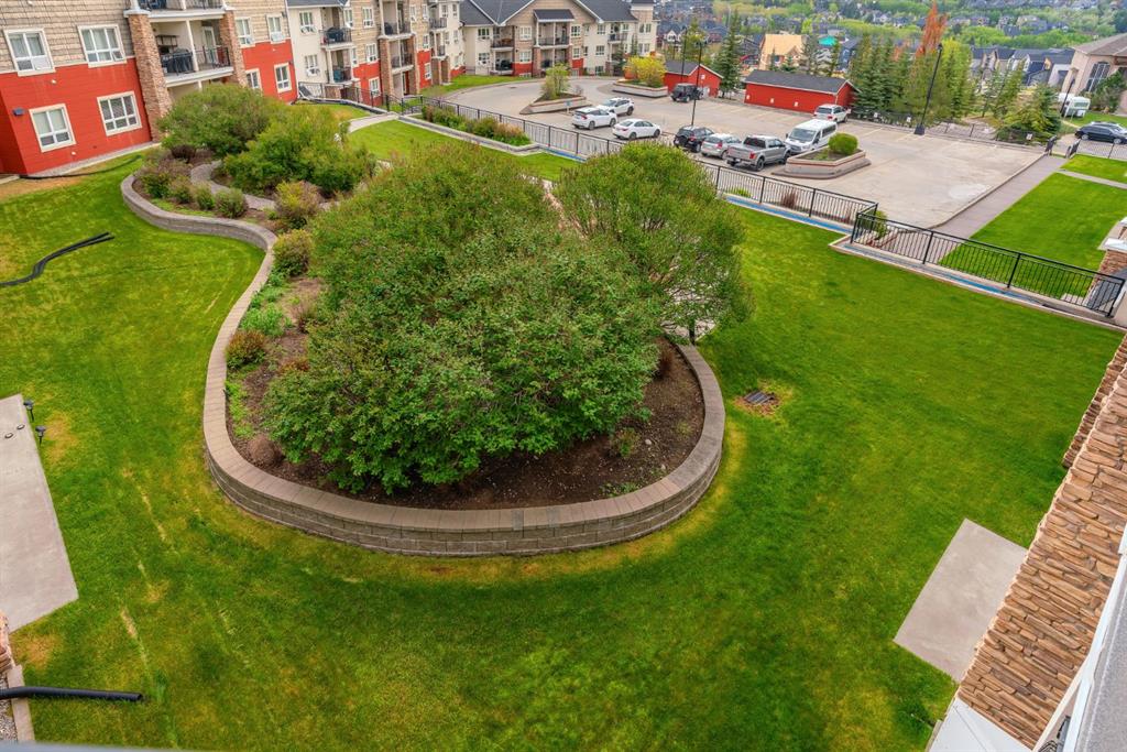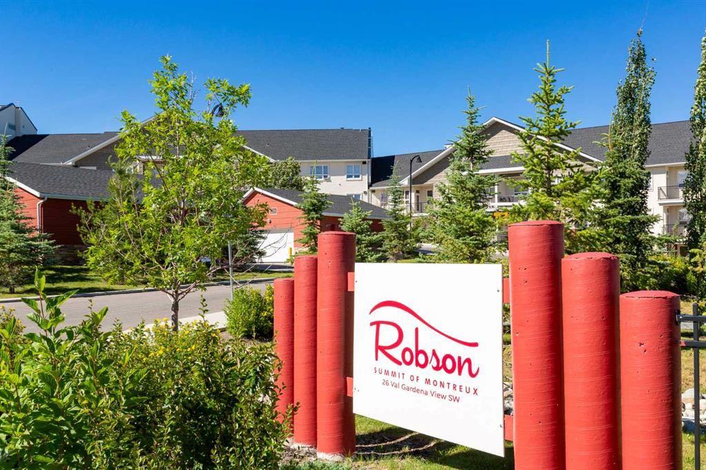 Welcome to the highly sought-after Robson in the Summit of Montreux condominium! This expansive top floor unit offers 800 sq ft of stylish, open concept living with no neighbours above for ultimate privacy and tranquility. Featuring 1 spacious bedroom plus a versatile den, the unit also includes underground parking and a private storage locker for your convenience. The kitchen is appointed with rich cinnamon-stained maple cabinetry, a built-in wall oven, sleek cooktop, and ample counter space, including a breakfast bar perfect for casual dining. The open layout seamlessly connects the kitchen to the bright dining and living areas, which flow out to a massive private balcony with unobstructed east facing views of the Springbank Valley. The king sized primary bedroom includes a walk in closet and a private 4 piece ensuite. A dedicated den/home office offers a quiet retreat for work or study. Additional highlights include a fully equipped fitness centre in the complex and ample visitor parking. Nestled on a quiet street in Springbank Hill, you're just minutes from Aspen Landing Shopping Centre, the LRT station, Westside Rec Centre, and scenic tree-lined walking paths. Don't miss your opportunity to own this exceptional top-floor unit in one of Calgary’s most desirable communities. A must to see