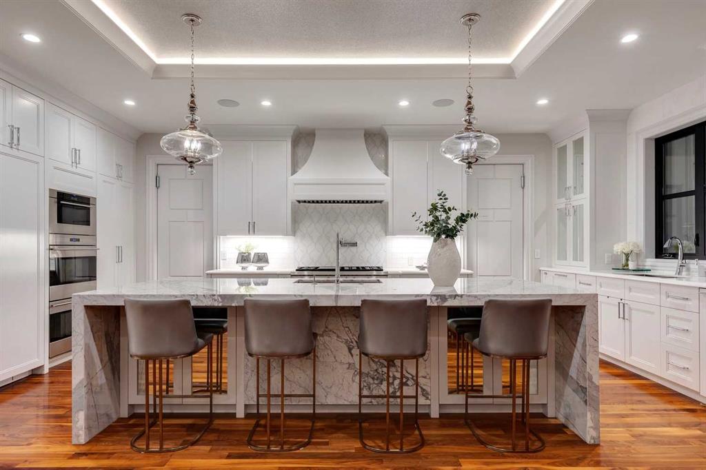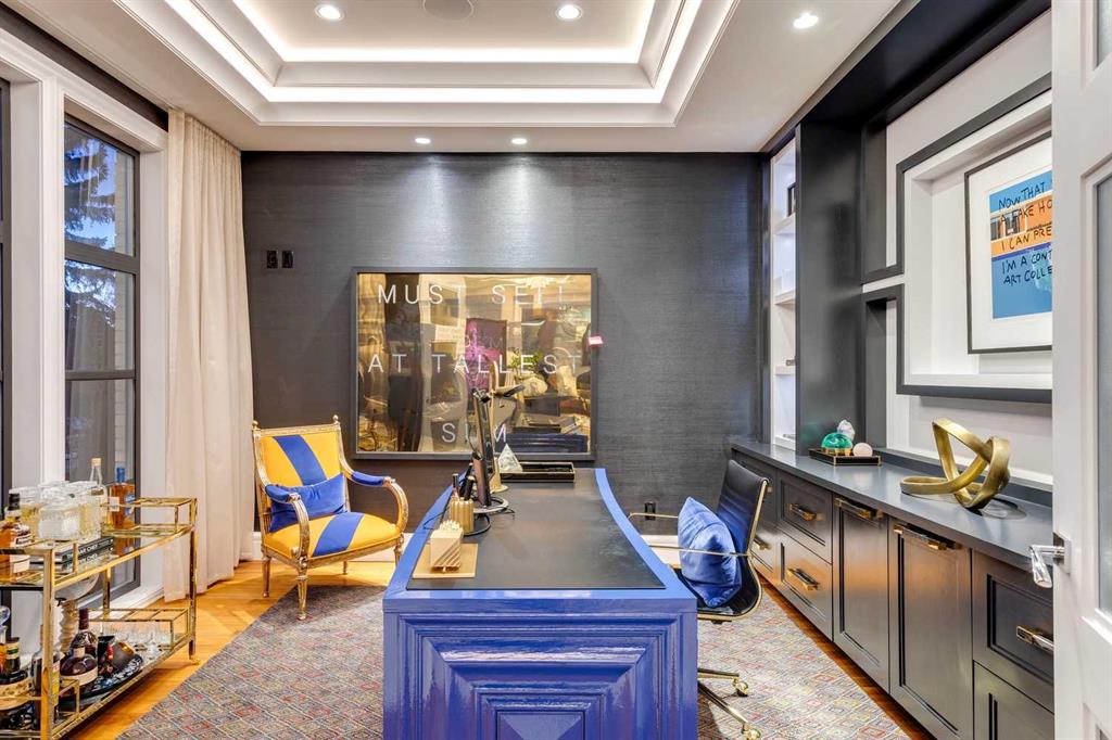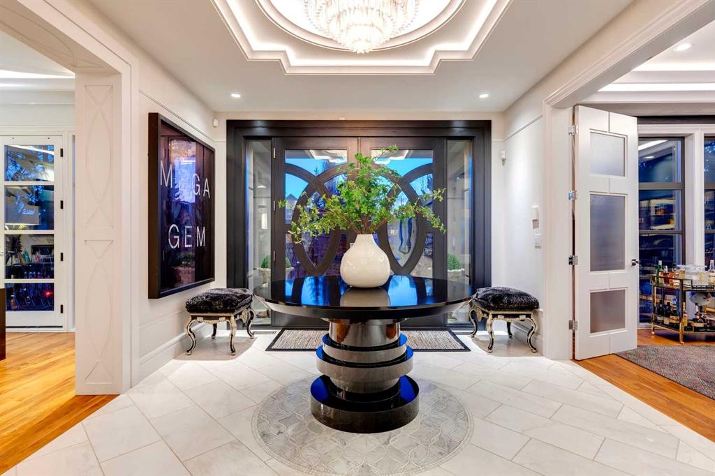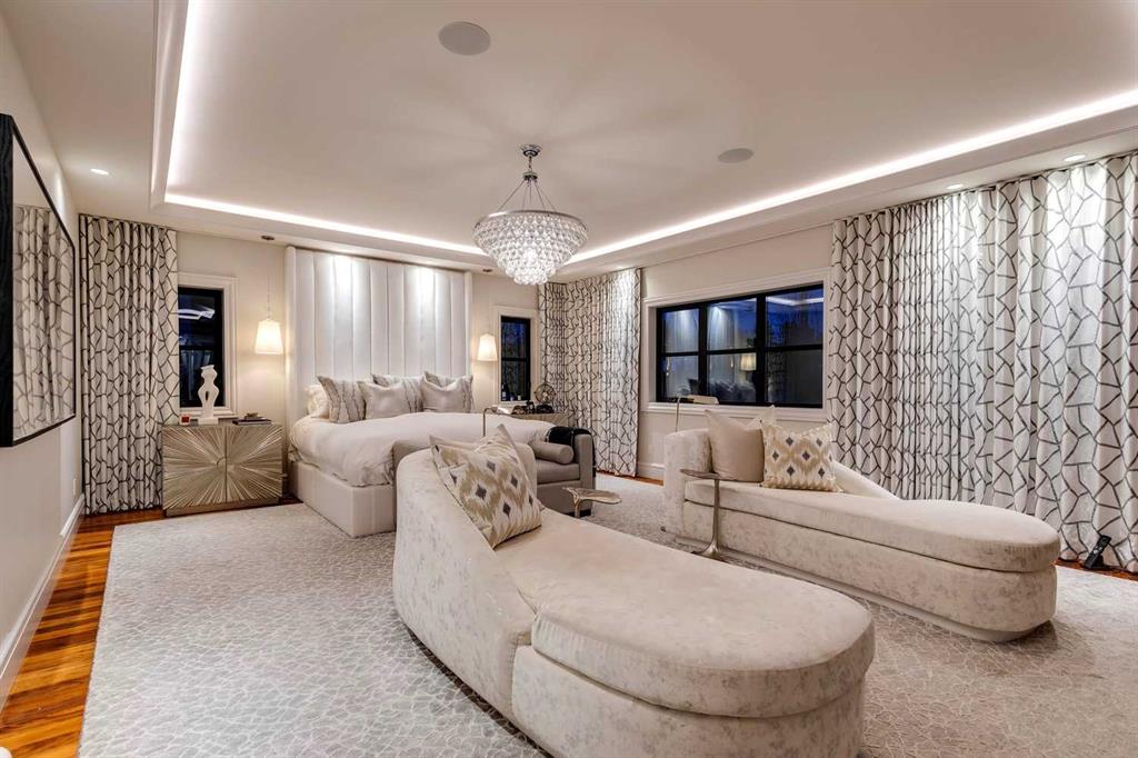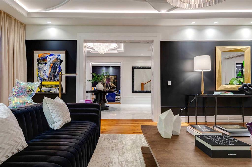 Phenomenal luxury Mount Royal home with over 7,600 sq ft of meticulously designed living space on a gorgeous huge lot that is privately gated + beautifully set back from the street. Stunning curb appeal + a dramatic entrance with a grand staircase is an impressive welcome to the home + leads to refined residence with a layout ideal for both family life + entertaining. The main level features beautifully appointed living spaces + is thoughtfully designed with a blend of open concept living + beautifully designated rooms. There is a gourmet chef’s kitchen, butler’s pantry + very comfy family room for casual living. Also a main floor library, huge living room + formal dining room which is elevated by a striking wine display. The generous mudroom leads to the oversized triple attached garage. The home offers 5 spacious ensuited bedrooms, providing exceptional privacy for family + guests. The impressive 800 sq ft primary retreat offers a lavish spa-inspired ensuite, expansive walk-in closet + serene views of the surrounding grounds. The walkout lower level is designed for next-level entertaining, featuring a sleek bar, media lounge + a boutique-style fitness studio. Multiple fireplaces throughout the home add warmth + ambiance to the luxurious interiors. Outdoors, the four spectacular living areas create indoor-outdoor flow, perfect for private relaxation + unforgettable gatherings. Close to all levels of exceptional schooling, parks, The Glencoe Club + downtown.