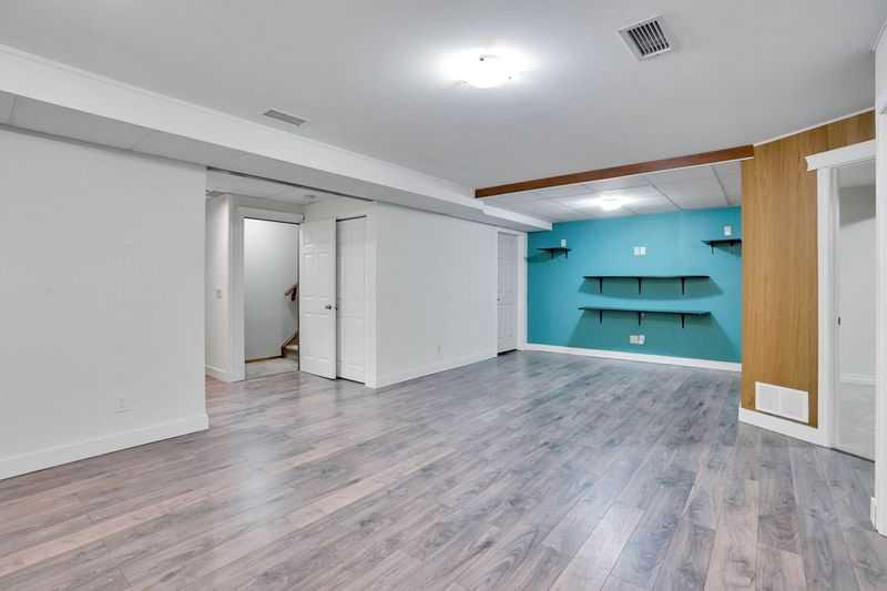 The fully developed basement adds two more bedrooms, a full bathroom, and a large family/entertainment area with generous storage closets, including one under the stairs.