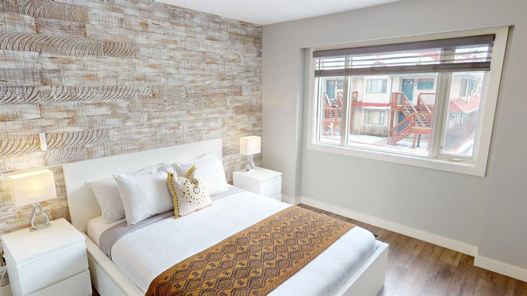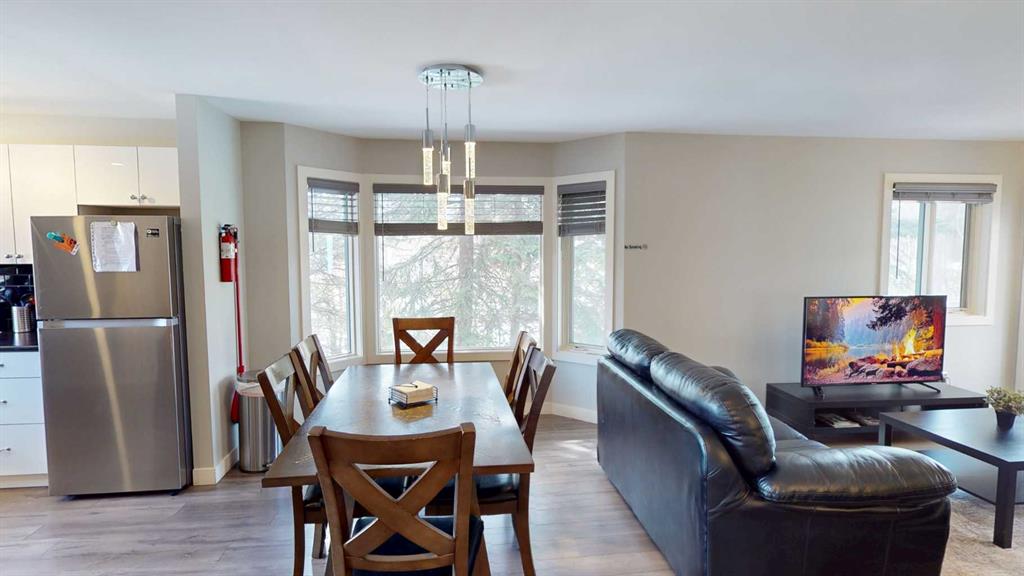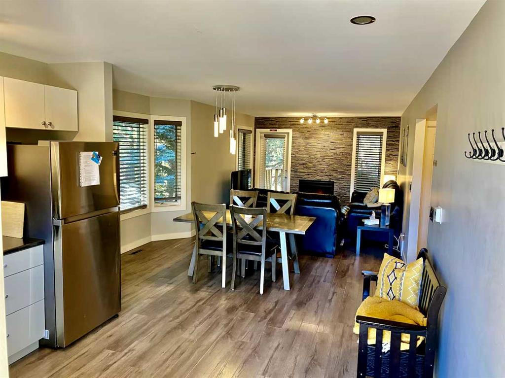 This Turnkey Ready **2 bedroom** HOTEL/CONDO** is a 2nd floor corner *END* unit with *spectacular mountain views*. This unit is an active AIRBNB unit great revenues. Located in Canmore on the the West side of Bow Valley Trail. Close to Downtown. Unit has newer furnace/hot water/tank and comes with all the furnishing and contents. Nicely updated with newer appliances and decor, Large windows and large Bay Window in Dining area, updated light fixtures with built in fans. Parking spot right in front of unit. Visitor parking available. The complex has newer 2 decks and stairs. Back deck is 100 sq ft. and Front Deck is 72 sq. ft.. Take a look at the 3D Tour in listing. The listing price **INCLUDES GST**