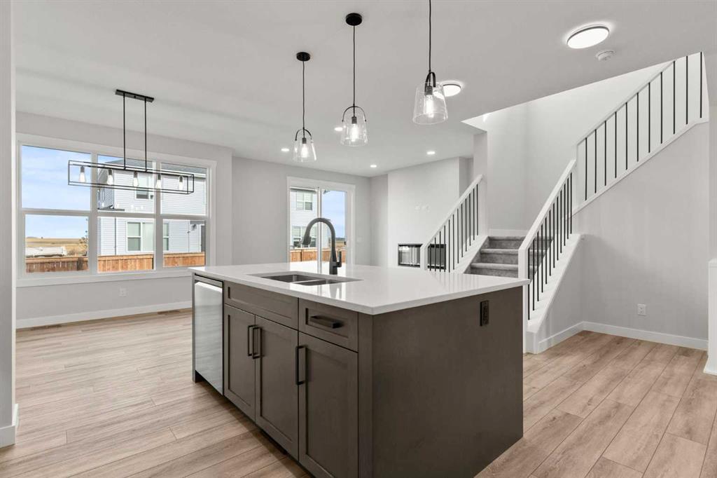 Welcome to 315 Kinniburgh Loop – a beautifully upgraded 3-bedroom, 2.5-bathroom home offered at a very competitive price. Built by Golden Homes, this residence combines luxury finishes, smart functionality, and modern comfort in one of Chestermere’s most desirable communities. The main floor offers a bright, open-concept layout ideal for both entertaining and everyday living. A spacious living room flows into a dedicated dining area and a stylish two-tone kitchen featuring quartz countertops, stainless steel appliances, built-in pantry, and a fully equipped spice kitchen. A tucked-away half bathroom provides extra privacy, and direct access to the double attached garage adds daily convenience. Upstairs, you’ll find three well-sized bedrooms, including a luxurious primary bedroom with a spa-inspired 5-piece ensuite complete with a freestanding tub, fully tiled shower, dual vanities, and a massive walk-in closet with custom built-in shelving. Two additional bedrooms share a beautifully finished 4-piece bathroom, and a convenient upper-floor laundry room completes the space. Additional upgrades include 9-foot ceilings and 8-foot doors on the main floor, black spindle railings, black hardware and designer lighting throughout, oversized triple-pane windows, built-in MDF shelving, finished stairs to the basement, a closed-off mechanical room, gas line for BBQ hookup, and rough-in for solar panels. 315 Kinniburgh Loop showcases Golden Homes’ commitment to quality, craftsmanship, and functional design. With luxury finishes, a thoughtful layout, and attention to detail, this home offers exceptional value in a prime location.