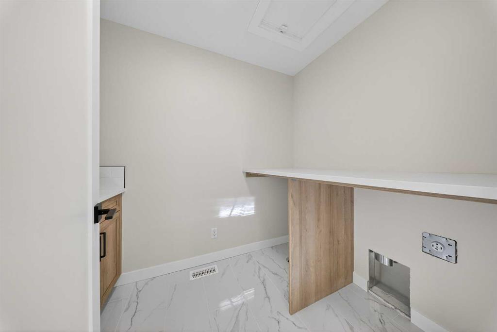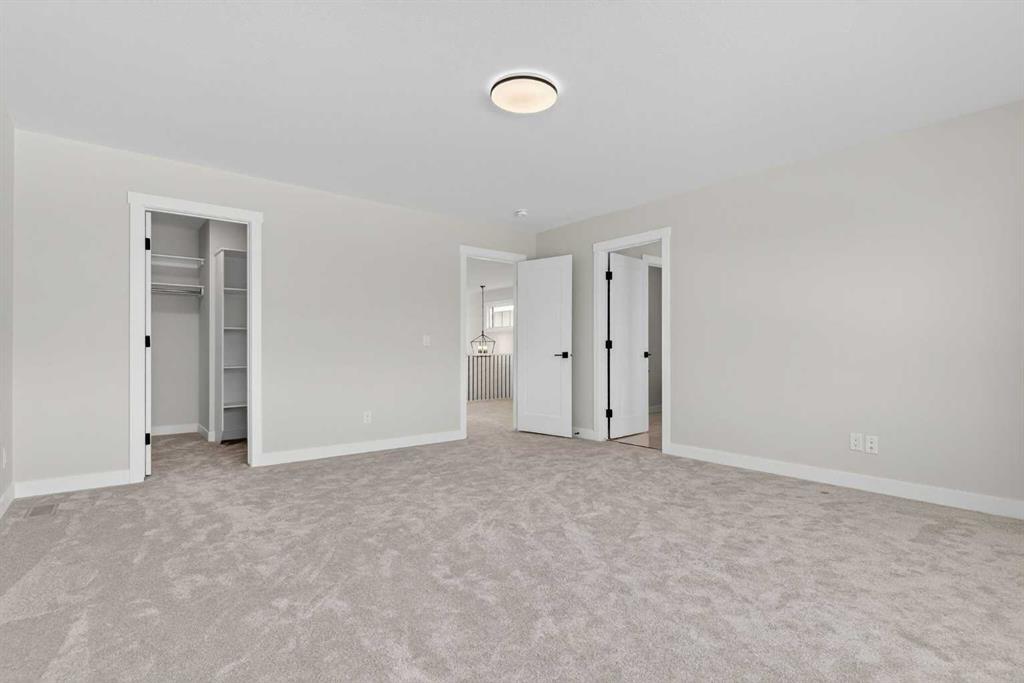 Upstairs, you’ll find two primary bedrooms, each with its own ensuite and walk-in closet. The main primary suite offers a large 5-piece ensuite with an enclosed toilet, full wall tile, and a spacious walk-in closet with upgraded MDF shelving. The second primary bedroom includes a 3-piece ensuite with a standing shower and its own walk-in closet. A third generously sized bedroom also features a walk-in closet and easy access to a nearby 4-piece bathroom. The upper floor is completed with a large bonus room and a full laundry room, finished with quartz countertops, a sink, and tiled flooring.