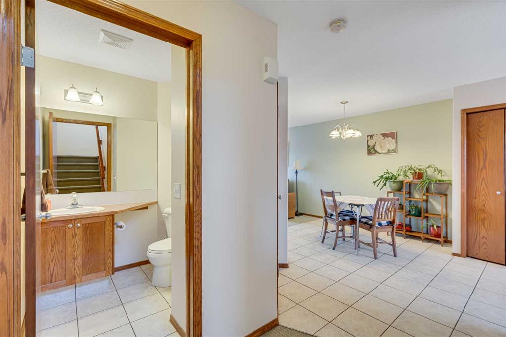 AMAZING FULLY DEVELOPED - 3 BEDROOM - 2.5 BATHS - NO CONDO FEES !! Designed to maximize the living areas with no wasted space this family sized townhome is located in downtown Strathmore within walking distance to shopping and schools. The main floor offers a brightly lit open concept floor plan with a spacious living room that will accommodate a sectional sofa and more. The open ended dining area is positioned between the working kitchen and the living room. An abundance of oak cabinetry boasts plenty of upper and lower cabinets. There is a very large storage area next to the kitchen that can be combined as a walk in pantry and broom closet. A private 2 pc bath is just off the back landing and away from the kitchen area. Upstairs you will find a primary bedroom with a walk in closet and a four piece ensuite bath overlooking the quiet rear yard and an additional two bedrooms that share a four piece bath. The lower level boasts an open family room area and laundry area. Direct access from this level leads to the single attached insulated garage. There is a shed in the fenced rear yard to keep your bikes etc as well as any gardening tools that you might use to maintain the lovely vegetable garden patch behind the shed. Parking boasts one covered garage space, garage pad and also plenty of street parking. Enjoy the benefits of home ownership in this fantastic townhome with quick possession. Call your favorite realtor today. `